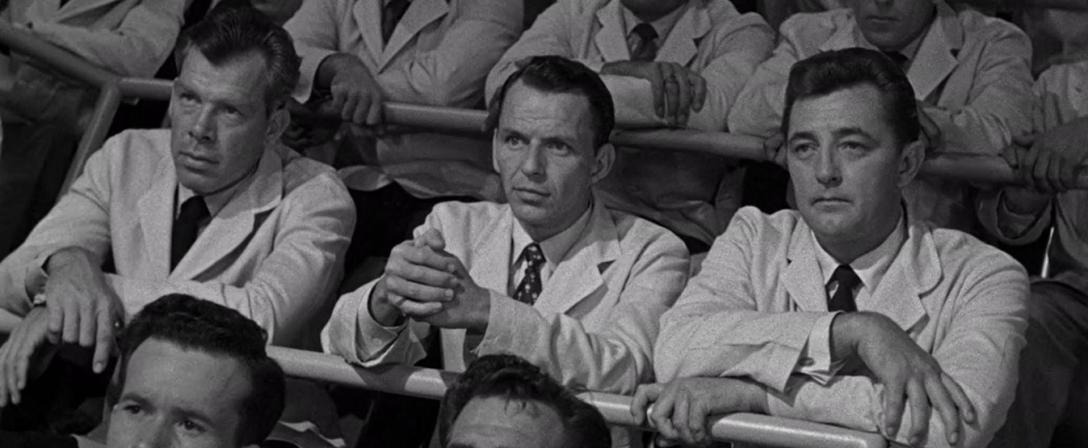Not As A Stranger does feature the world’s oldest med students in the shapes of Mitchum and Frank Sinatra, who at the time of filming were 38 and 40, respectively. As such, it does require you to initially suspend disbelief, and the disconnect is particularly jarring in the case of Sinatra, whose role as the happy-go-lucky part of the coupling must engage in frat boy antics and generally take on a youthful air.